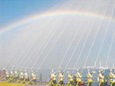 その中でも圧巻の、赤レンガ倉庫から海に向かって行われる一斉放水訓練を、船上からご覧いただく新春特別クルーズ。